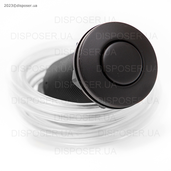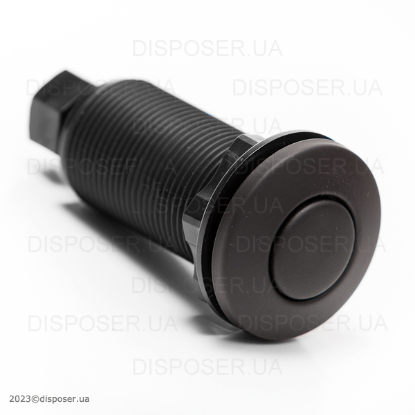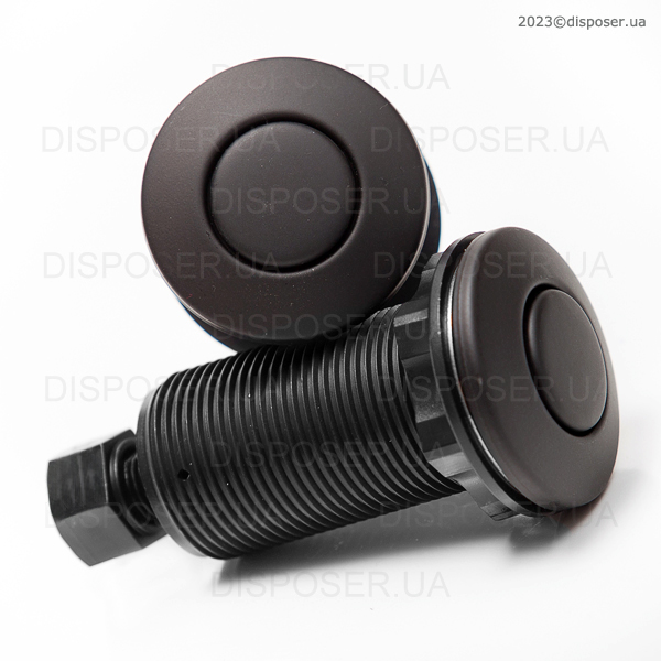 Являє собою чорну матовуз теплим відтінком пневматичну кнопку запуску для безпечного та зручного використання з усіма видами диспоузерів. Як автономний пристрій - працює з будь-якими подрібнювачами, у яких передбачено пневматичний запуск. В якості заміни безпосередньо самої кнопки - підходить для УСІХ типів подрібнювачів харчових відходів незалежно від бренду.