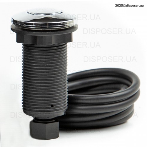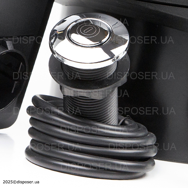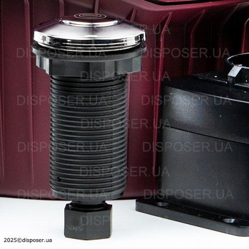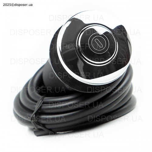 Дана кнопка може бути встановлена на стільницю поблизу мийки або прямо на мийку. Кнопка з'єднується безпосередньо ПОВІТРЯНИМ ШЛАНГОМ зі вбудованим в корпус подрібнювача вимикачем (мікріком). Або якщо це нові моделі 2025 року - приєднується до зовнішнього виносного блоку керування. При натисканні на кнопку, повітря по шлангу давить на мікрік і двигун утилізатора запускається. При наступному натисканні - відключається. Оскільки до пневмокнопкі приєднаний тільки повітряний шланг (а не електричні дроти), Ви абсолютно спокійно можете включати подрібнювач мокрими руками, а також не боятися попадання крапель води на кнопку (що неминуче поблизу мийки). В той же час, варто стежити за тим, щоб кількість води, що потрапляє на пневмокнопку, була мінімальною. Врізання пневматичної кнопки управління подрібнювачем робиться в зручному для Вас місці, але чим менше на кнопку потрапляє води, тим довше вона служитиме. Пневмокнопка від Insinkerator - під стандартний технічний отвір діаметром 33 мм