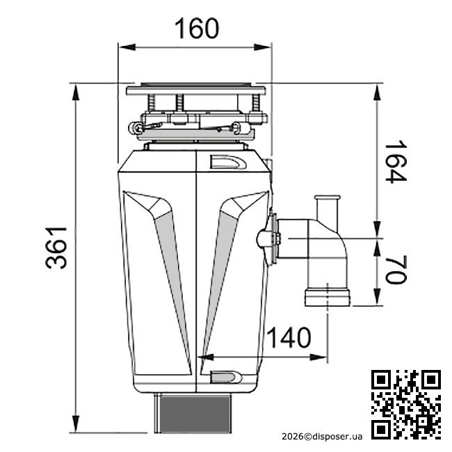 • Діаметр: ~160 мм. ( ~220 мм. збоку з урахуванням патрубка )