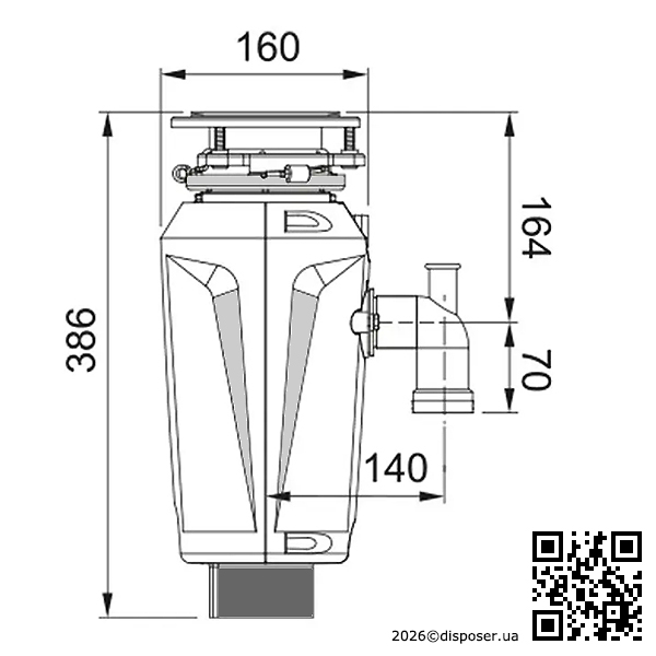 Спосіб завантаження – безперервний. Індукційний двигун: 0,75 HP. Антикорозійний захист. Автоматична система захисту від перевантажень. Подрібнювач звуженої форми дасть можливість для маневру всередині кухонної тумби, він відмінно підходить для невеликої сім'ї з 2-3 осіб.